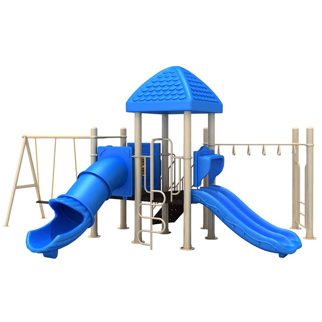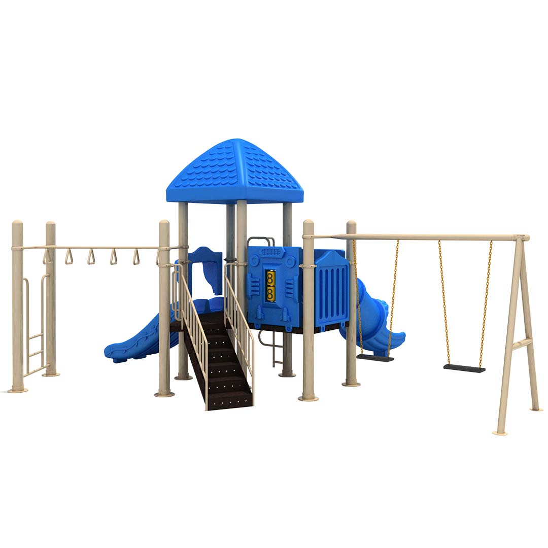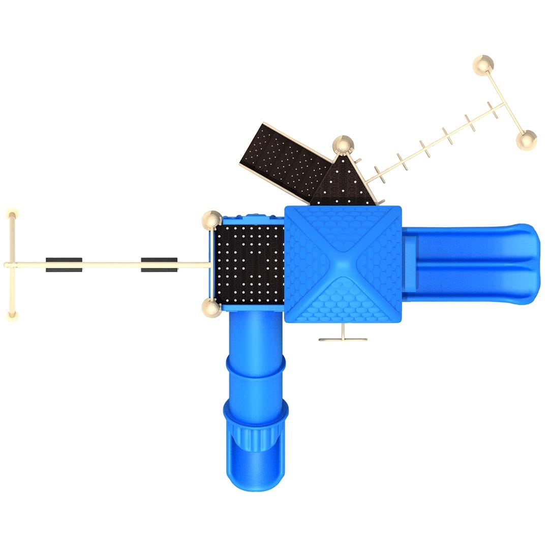 Juego infantil con estructura metálica de acero galvanizado, recubrimiento en polvo y plástico de rotomoldeo.Medidas: 6.50 x 5.00 x 3.00h m. Área de Seguridad: 10.50 x 9.00 m. Capacidad: 15 a 18 Niños. Edades: 3 a 12 años.