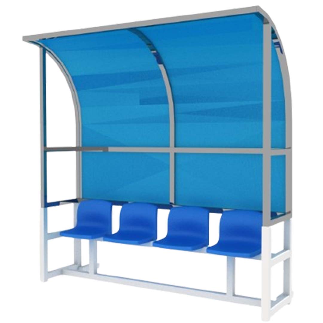 Estructura de acero galvanizado con recubrimiento en pintura electrostática. Techo fabricado en policarbonato con estructura de acero inoxidable. Asientos de plastico para 4 usuarios. Medidas: