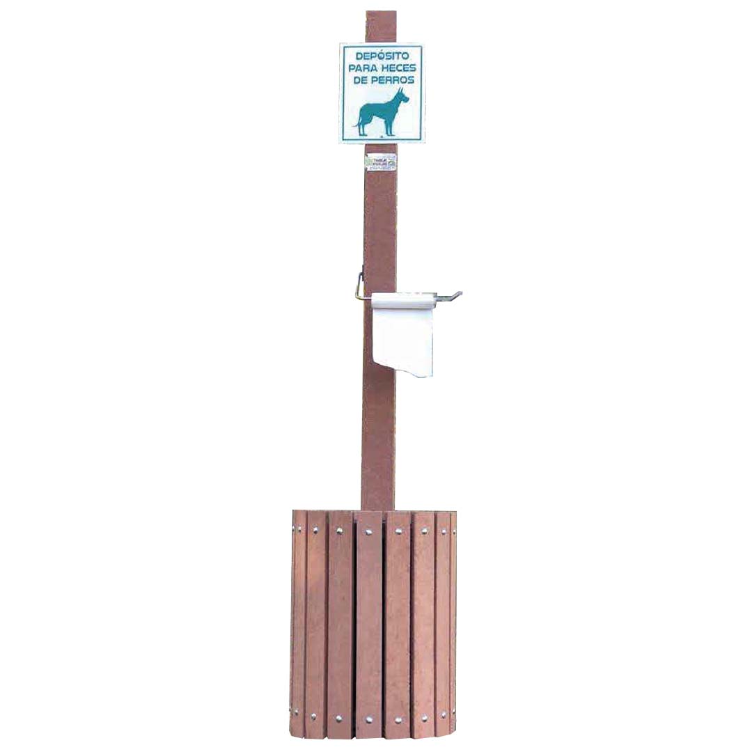 Bote de basura canino fabricado con madera plástica 100% reciclada. Incluye soporte para bolsas.