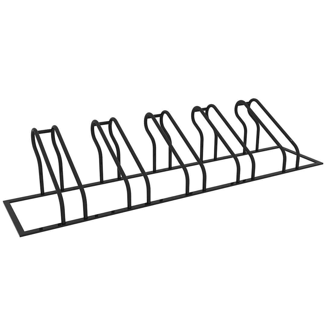 Aparcabicicleta fabricado en acero galvanizado con acabado en pintura electrostática. Medidas: 2.00 x 0.40 x 0.45h m. Área de seguridad: 5.00 x 3.40 m. Capacidad: 5 Bicicletas.