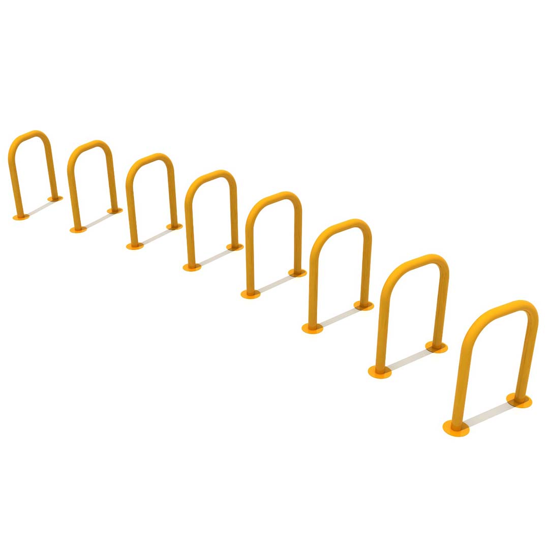 Componente canino (arco) fabricado en acero galvanizado con acabado en pintura electrostática. Set de 8 piezas. Medidas: 0.90 x 0.10 x 1.20h m. Área de seguridad: 3.90 x 3.10 m.