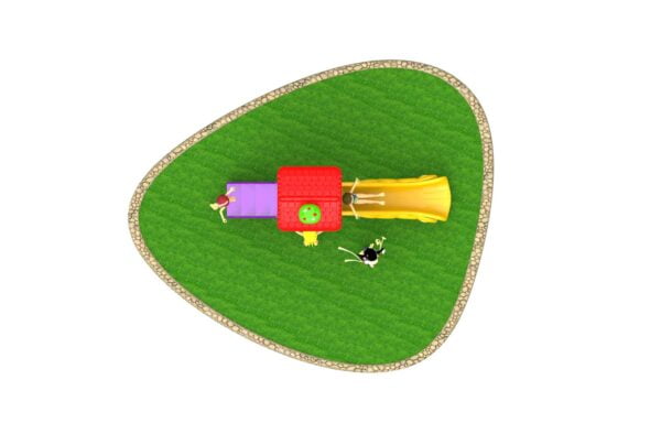 Juego infantil con recubrimiento en polvo, plástico de rotomoldeo. Medidas: 2.90 X .90 X 2.20h m. Edades: 2 a 6 años.